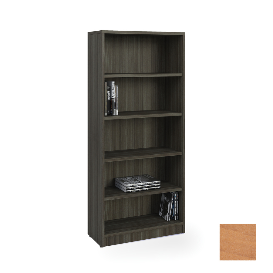 Tall five-shelf bookcase is part of the Heartwood Innovations Laminate Series that combines intelligent design and function with lasting durability. Sugar Maple Laminate is water-resistant, scratch-resistant, dent-resistant and burn-resistant and requires little maintenance to keep it looking great. Durable, premium, thermally fused, woodgrain laminate tops thick, 45 lb. industrial particleboard core. Tough, 3mm thick, PVC color-matched edging provides excellent wear-resistance. Pair bookcase with Heartwood Innovations office configurations to add open storage and showcase space for awards and important photos. Three shelves adjust in 1" increments so you can tailor it to your preferences.