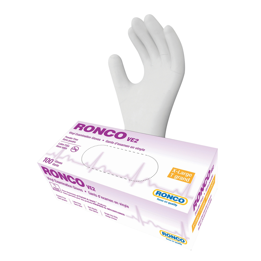 RONCO VE2 Vinyl Examination Glove (4 mil) - 4 mil (0.10 mm) Thickness - X-Large Size - For Right/Left Hand - Clear - Latex-free, Flexible, Comfortable, Durable - For Food, General Purpose, Healthcare Working - 100 / Box
